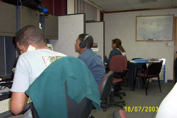 Desde la izq, Hamlet (del departamento de Equipo (IT)) hablando por telefono en el escritorio de Jorge, Vladimir probablemente escuchando The Doors y Yesenia bailando al ritmo de Paulina. |
