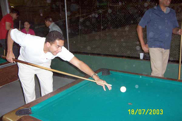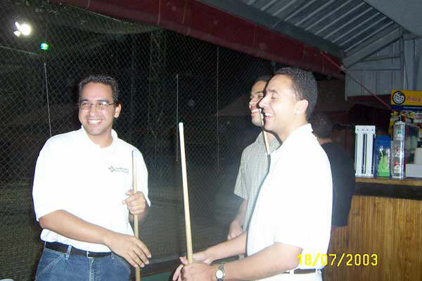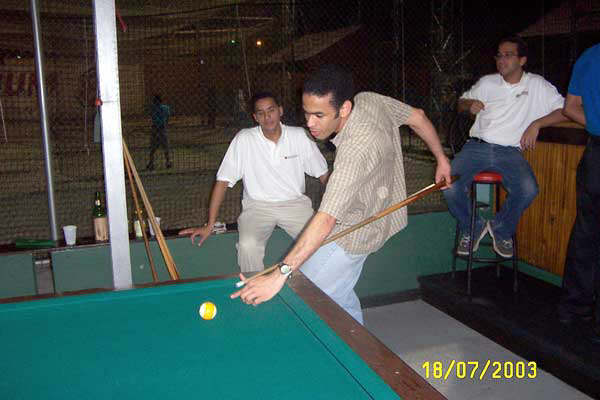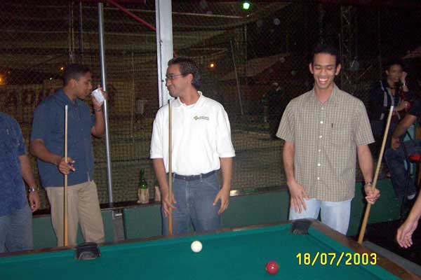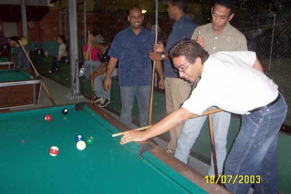El viernes el jefe nos saco a janguear al billar. Desde la izq, Roberto, Jorge y Vladimir. |