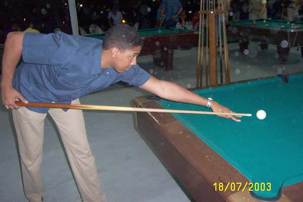 Si seņores, estoy jugando billar y bebiendo Presidente con los muchachos. |